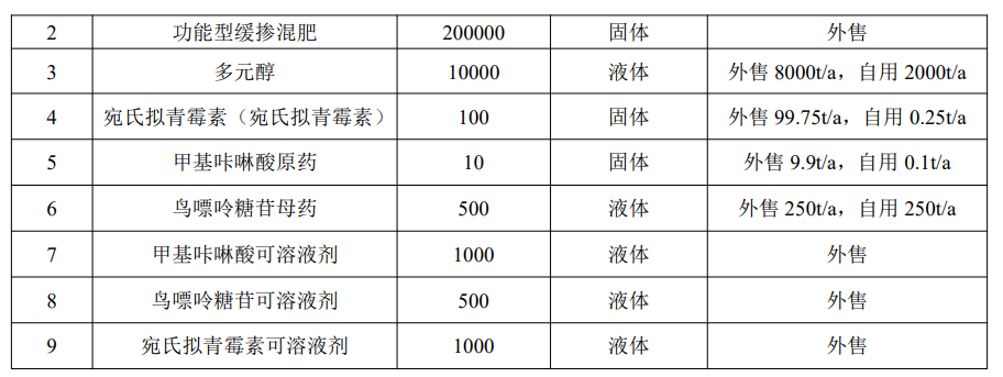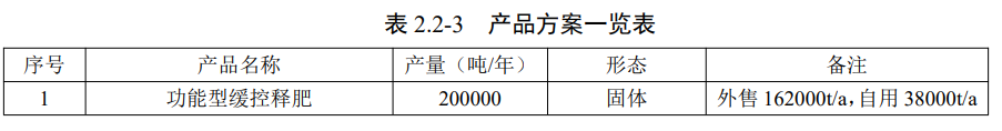 建设内容:项目计划新建生产车间、成品仓库、原料仓库、公用工程车间等厂房,购置反应釜、调配罐、罐装机、中转罐、吨袋拆包机、筛分机、除尘器、离心机、干燥器、喷淋塔等设备73台套。项目建成后可实现年产20万吨功能型缓控释肥、20万吨功能型缓释掺混肥、10000吨多元醇、100吨宛氏拟青霉素、10吨甲基咔啉酸、500吨鸟嘌呤糖苷母药、1000吨甲基咔啉酸可溶液剂、500吨鸟嘌呤糖苷可溶液剂、1000吨宛氏拟青霉素可溶液剂。